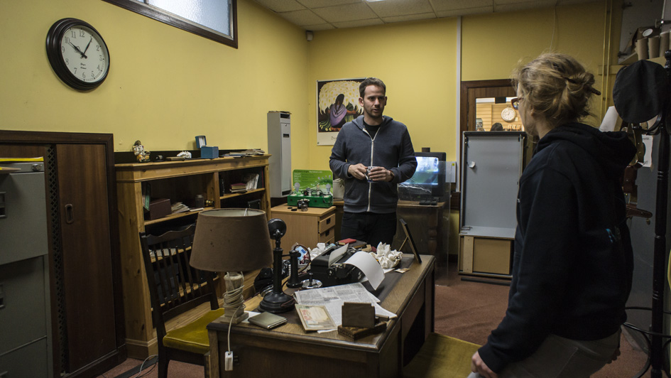 11am. Inserts are done. We switch units. Art restores the furniture store office to its former glory. The rest of us move to the church hall to shoot.