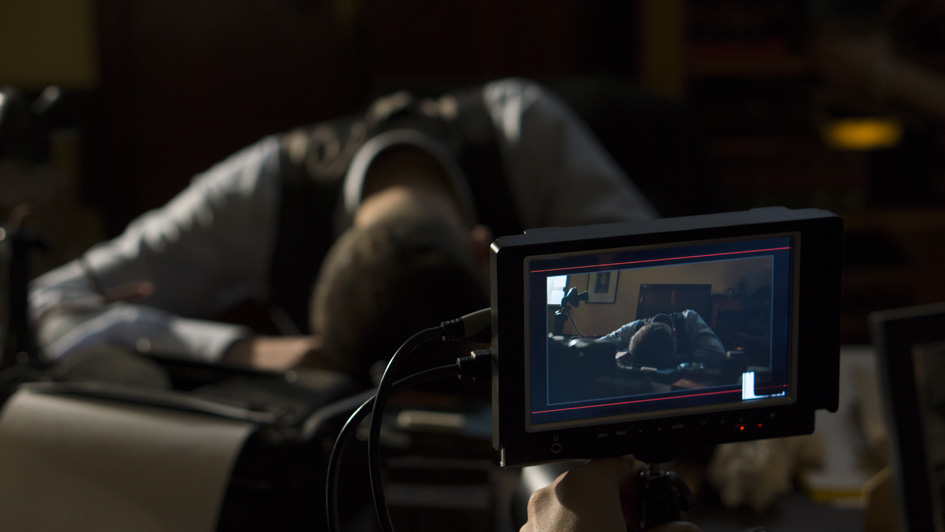 After we cut, I go to the monitor. Aaron and Sean are smiling. They show me the playback. In the middle of the scene, one of the extras takes out their iPhone and reads a text. We go again.