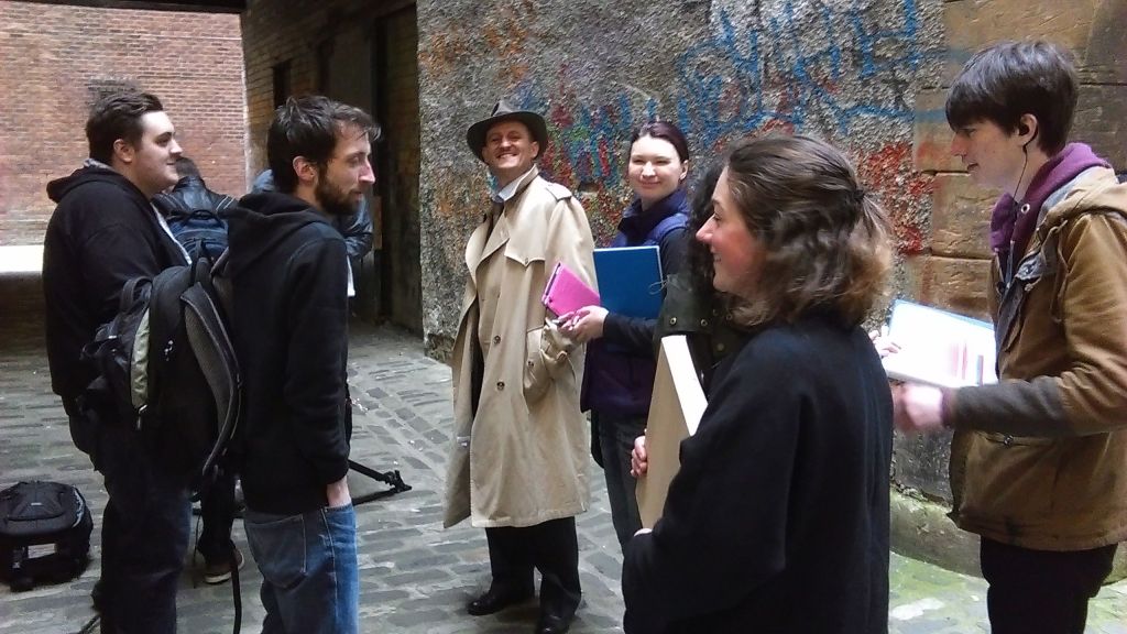 1 May 2015. Day #1, Shot #1. Karl J. Claridge, as private eye Dick Nicely, walks into an alleyway and looks around.