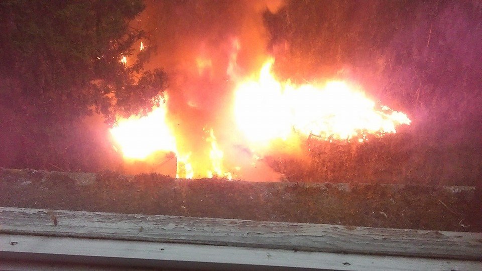 Saturday 8 August 2015. A crackling noise wakes me at 6am. Flames lick my bedroom window.